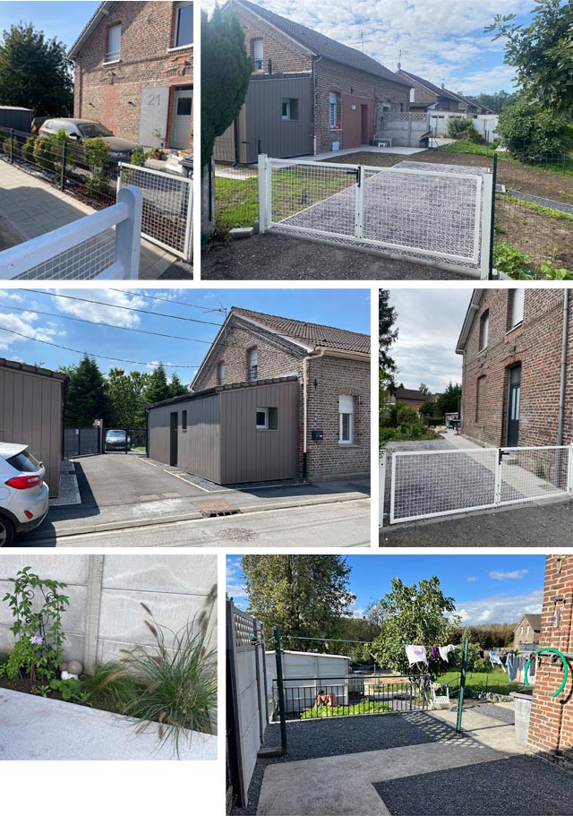 Le projet comprend l’aménagement des espaces en façade avant : clôture, grillage, portillon, portail, haie végétale, le traitement des entrées piétonnes et véhicules : allées, aires de stationnement à la parcelle, l’harmonisation des limites séparatives permettant une intimité entre les jardins…
