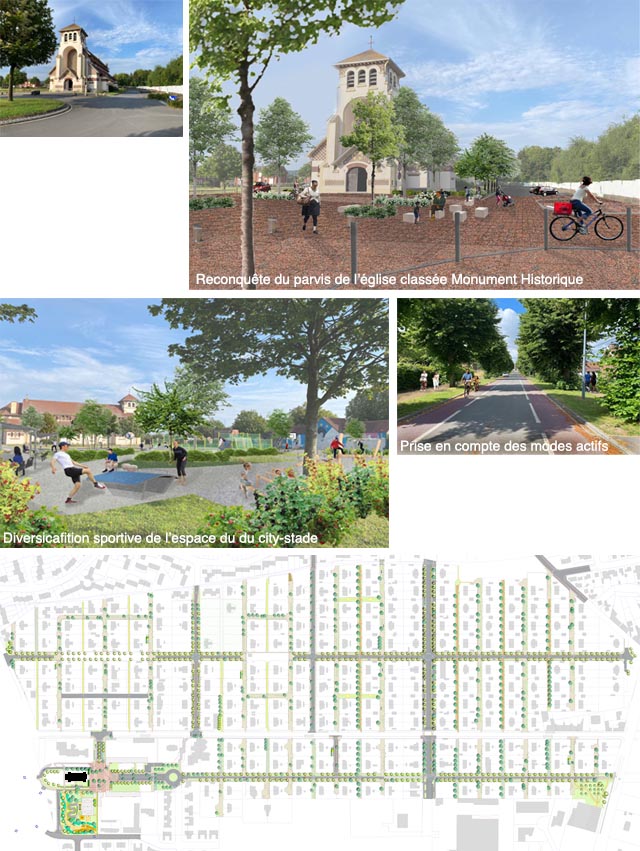 Le projet améliore la lisibilité des entrées de la cité, la hiérarchisation viaire et la logique d’accès au logement par les systèmes de venelles. Les espaces publics sont rendus lisibles et accessibles tout en gommant le vocabulaire routier. L’aménagement permet de renforcer la centralité du quartier autour des équipements culture-jeunesse en intégrant les projets à venir (béguinage, ouvroir, pôle des solidarités sur l’ex Lidl…).