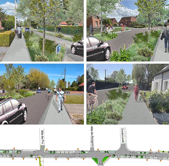Présentant un cadre est particulièrement attractif, rehaussé par la qualité des jardins et des limites privées, la rue fait l’objet d’une réflexion visant à préserver son caractère résidentiel. Aujourd’hui très empruntée par un trafic de transit, les nuisances s’accumulent : des dispositifs de recalibrage des espaces sont proposés en évitant un vocabulaire routier au profit d’une approche paysagère globale : prise en compte des modes doux, accompagnement végétal.
